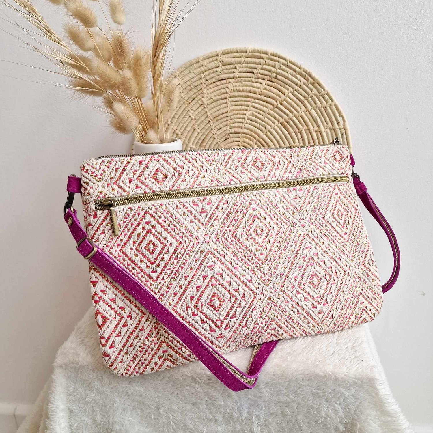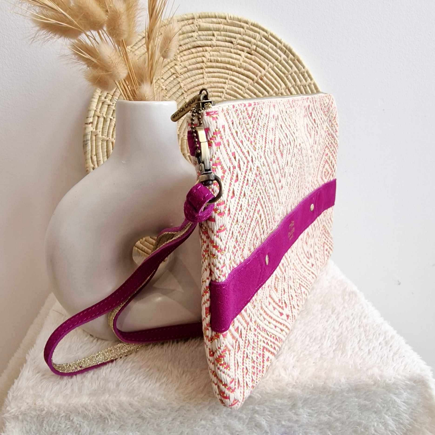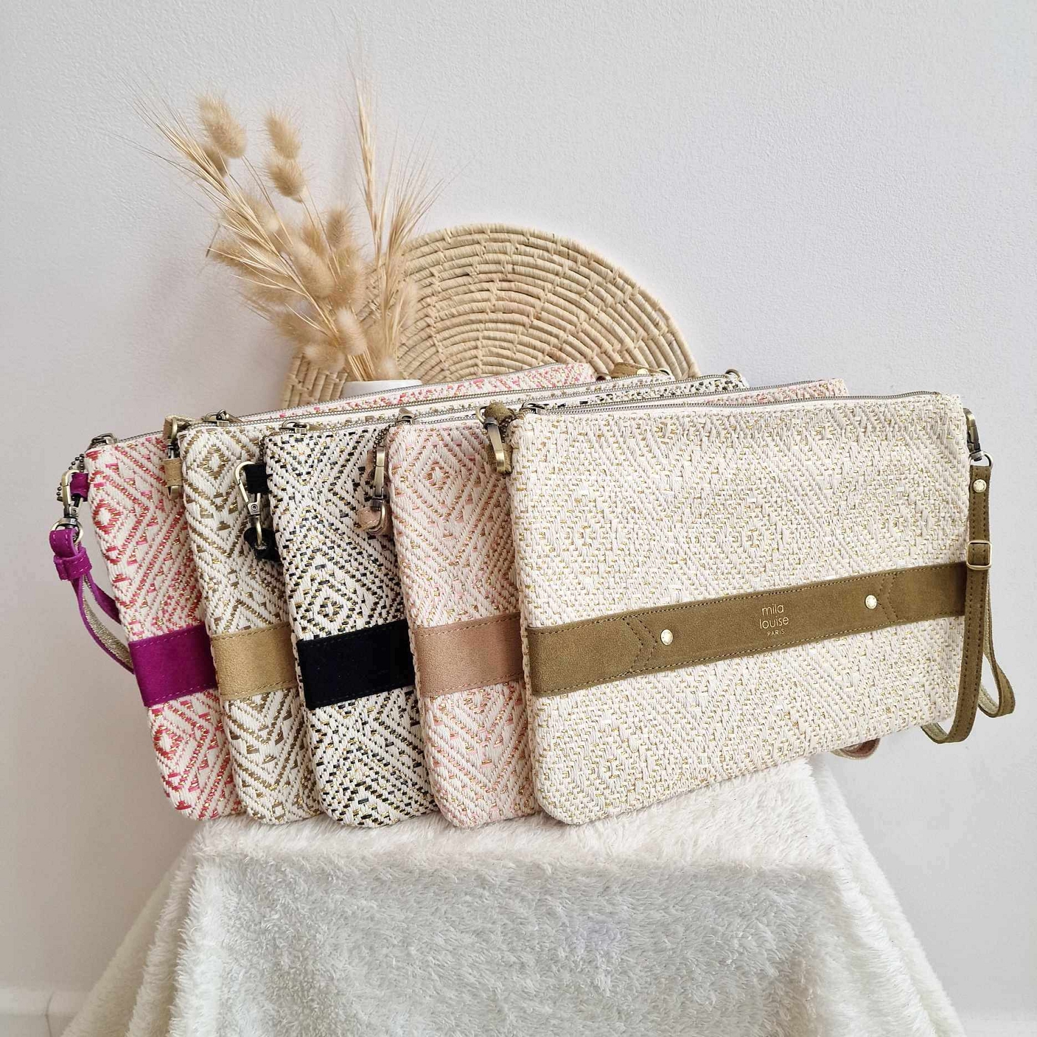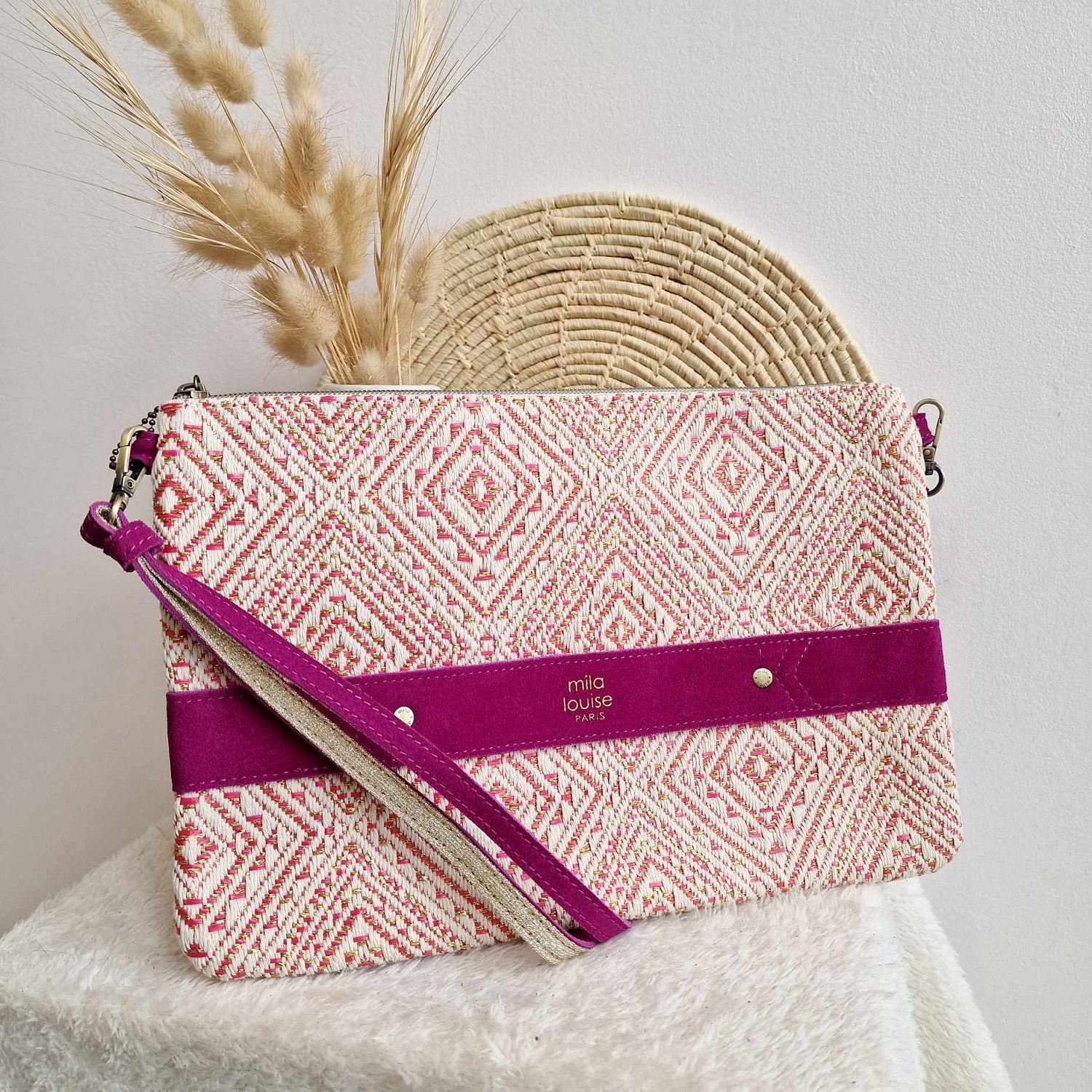 La pochette NINA XL de Mila Louise, elle vous permet autant de faire la belle en soirée que de promener votre tablette bien protégée. Muni d'une poche principale zipée ainsi qu'une autre à l'arrière elle possède également des rangements intérieurs. A porter en travers, sa bride est amovible pour un porté main.En textile avec tous les détail en cuir velour. Dimensions:30*20*1cm. Pour prendre soin de ce sac, vous penserez à la protéger de l'humidité, de la pluie et des frottements. En effet, la teinture utilisée peut être sujette à dégorgement, éviter le contact avec des tissus de couleurs claires.